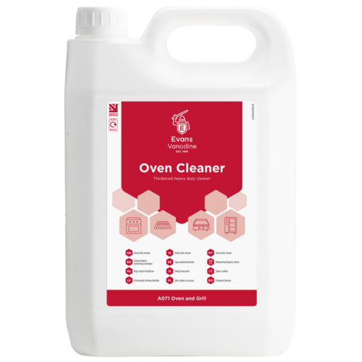 Evans Oven Cleaner is a powerful and effective, thickened, foaming, heavy-duty oven cleaner for cleaning the interior of enamelled ovens and surfaces, griddles and cast iron hobs. It removes the most stubborn baked-on grease and carbon. The foam clings to vertical surfaces giving a longer contact time for better cleaning. A low odour, unperfumed formulation.